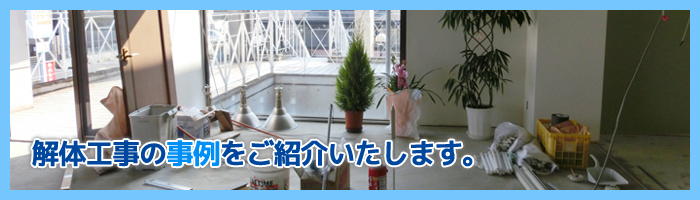 部分解体工事店舗やオフィスの一部、家屋の一部解体の工事です。や配管設備などのやり替えに伴う解体が多いです。 |